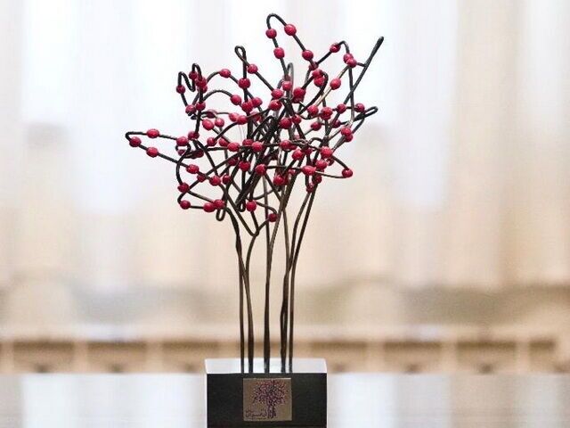 اهدای تندیس جایزه‌ ارغوان و لوح تقدیر به نفر اول